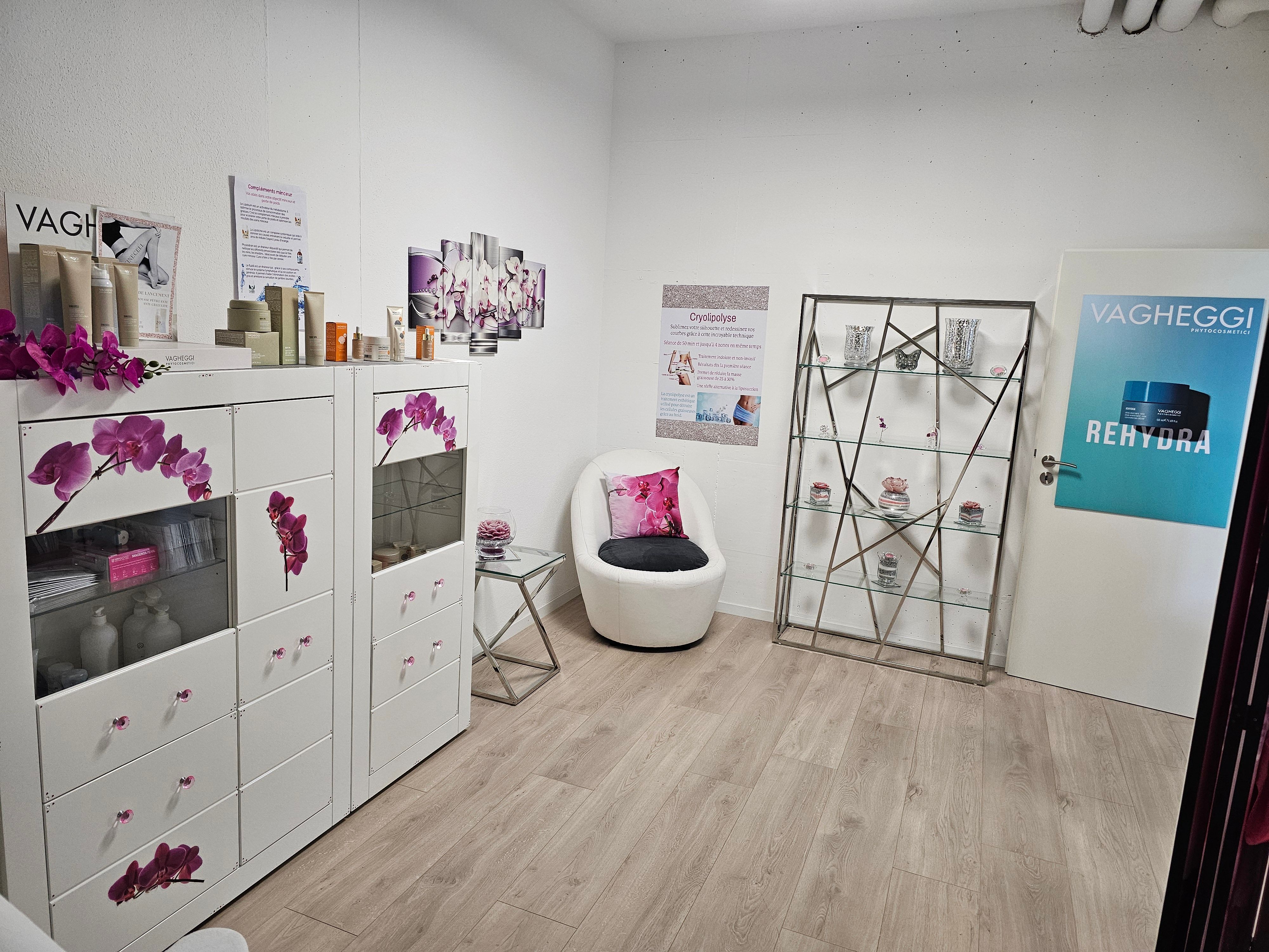 Ensuite je travaille avec la radiofréquence pour l’effet repulpant et lissant. Application d’une brume lénitive, puis d’une ampoule ou d’un sérum aux concentrés actifs. Et pour terminer, pose d’un masque illuminant et application d’une crème.